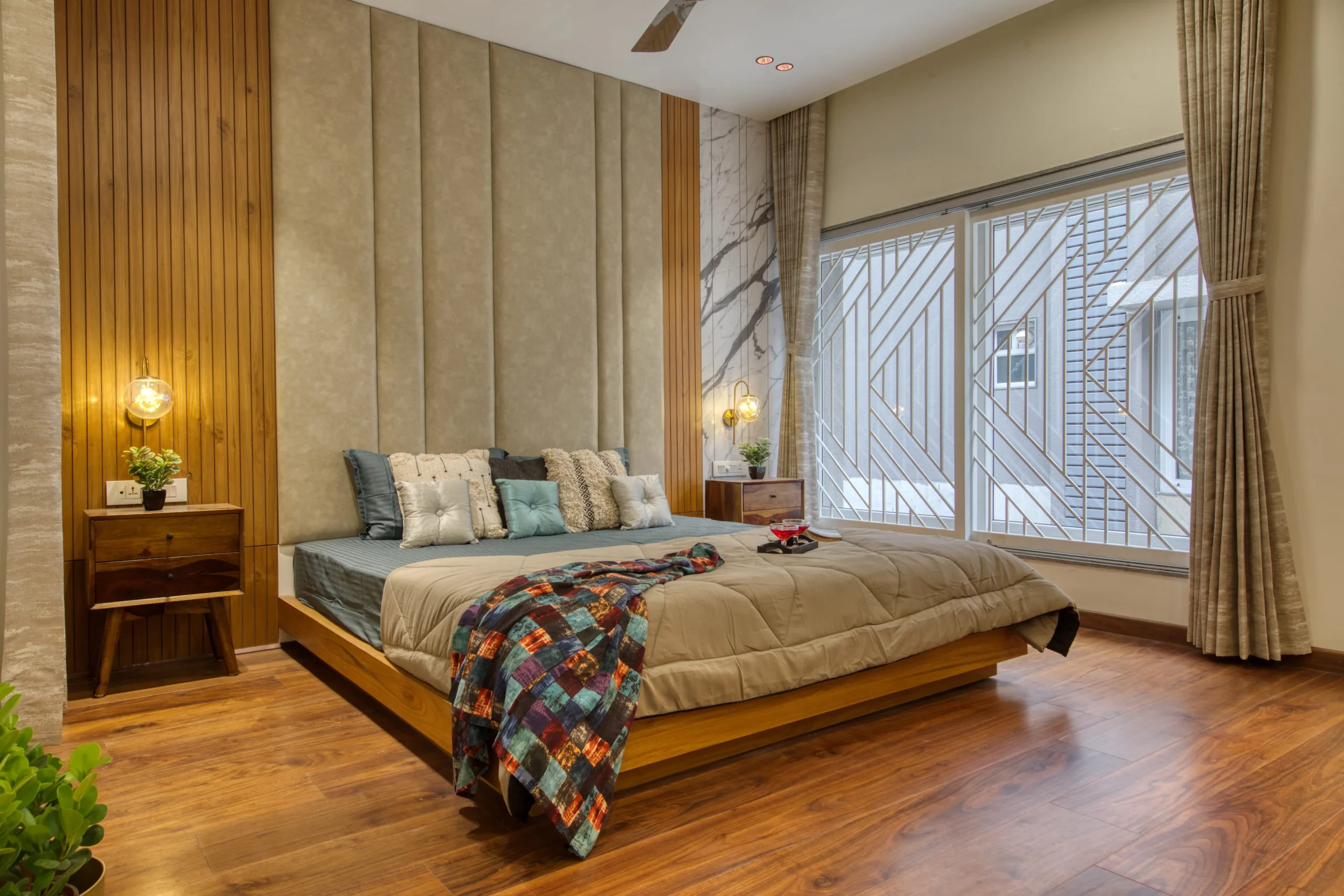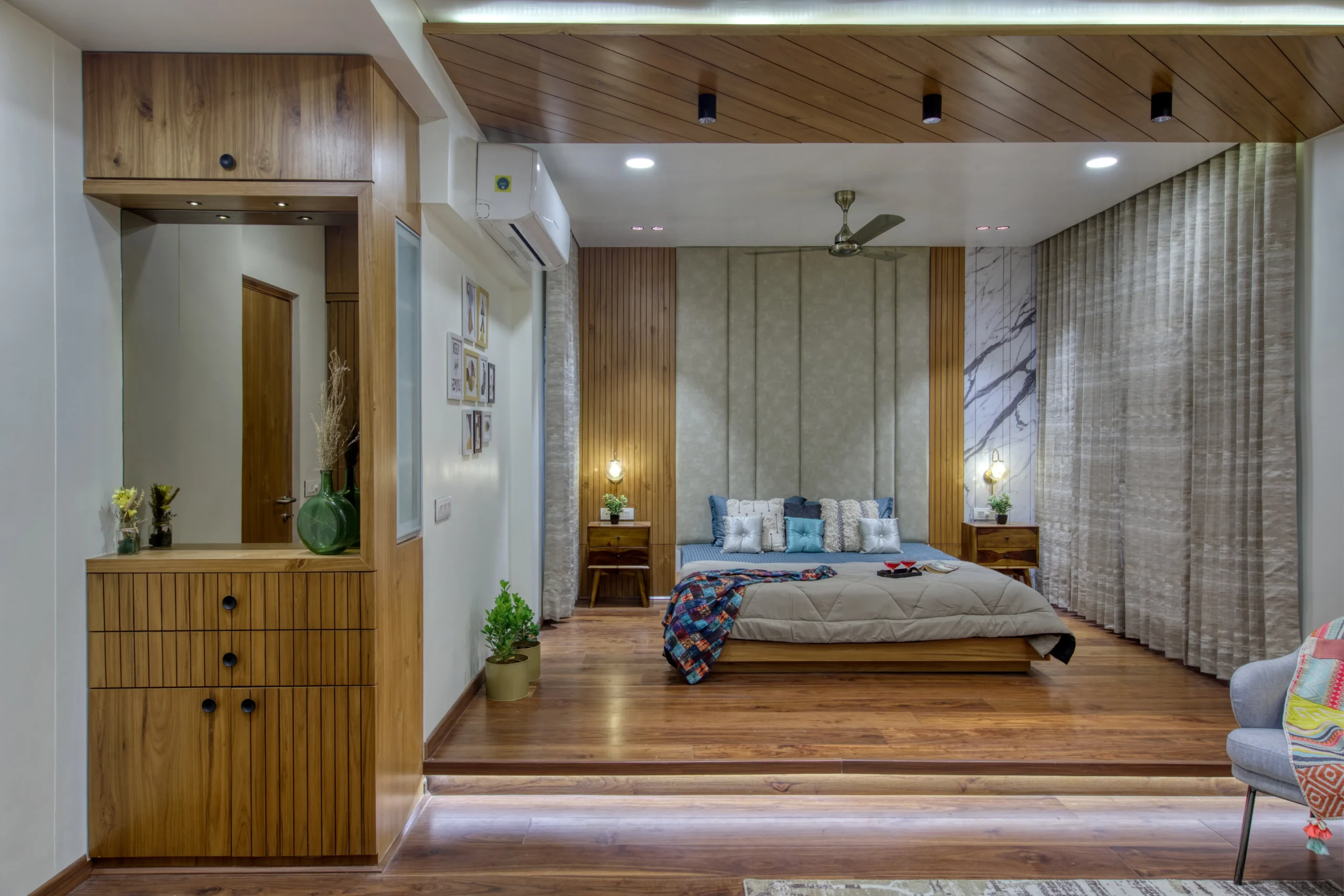 From the geometric staircase wall to the warmly lit wooden bedrooms, Westridge Pacifica is designed with a layered approach — each space has its own texture, mood, and material identity while the home reads as one cohesive whole.